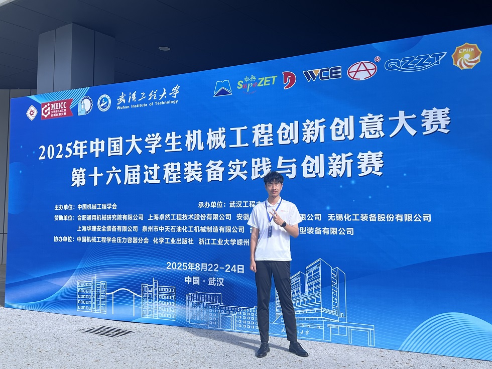 8月24日,第十六届过程装备实践与创新赛闭幕式在武汉工程大学圆满落幕。在这场汇聚全国高校精英的激烈角逐中,我院学子91视频 222班的张珈恺同学凭借出色表现,荣获本科生组一等奖。