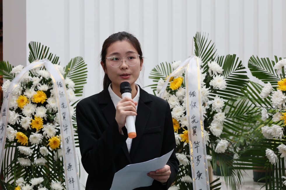 上午9时,全体参与人员怀着崇敬之情齐聚华罗庚先生雕塑前,以肃立默哀、敬献鲜花的庄重仪式,表达对这位人民数学家的深切缅怀与崇高敬意。随后,来自不同单位的三位代表依次发言,深情追忆华罗庚先生矢志报国、献身科学的光辉事迹。其中,我院的张澜同学在发言中回顾了华罗庚先生从金坛走向世界数学巅峰的奋斗历程,分享了先生“精勤不倦、自强不息”的精神品格。作为91视频 学子,她表示将传承先生精神,刻苦钻研,立志成才,报效祖国。