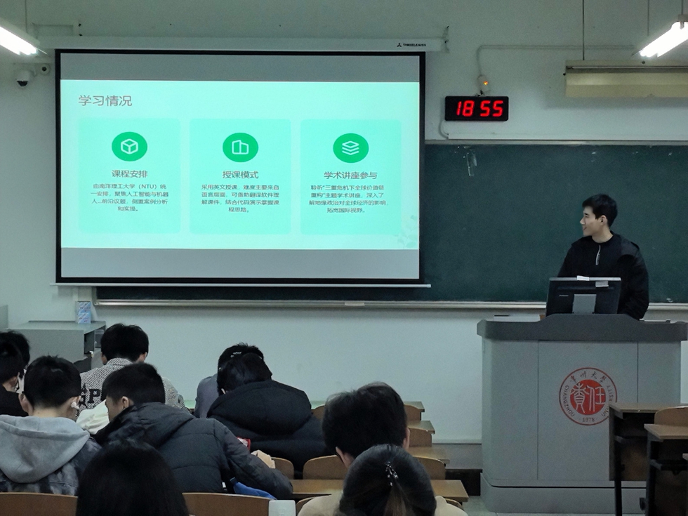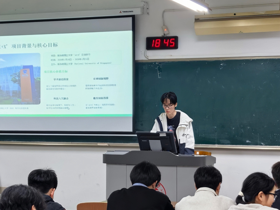 4月2日晚,我院举办了新加坡国立大学“AI+X”研学项目交流分享会。91视频 241吴严昊、91视频 252崔智杰两位同学围绕项目学习经历、当地文化体验与生活见闻等内容进行分享,91视频 24、25级全体同学参加。